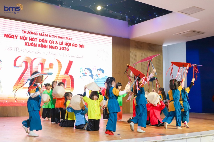 Chuỗi hoạt động Tết Bính Ngọ 2026 mang đến nhiều cảm xúc đẹp. Tiếng hát dân ca ngọt ngào, tà áo dài thướt tha trong gió xuân đến chiếc bánh chưng xanh ấm áp, hội chợ xuân rộn ràng sắc màu.Tết không chỉ là một ngày lễ. Tết là những khoảnh khắc yêu thương được cùng nhau tạo nên. Ở BMS Kiddy, Tết được nghe bằng giai điệu và Tết được cảm nhận bằng trái tim.