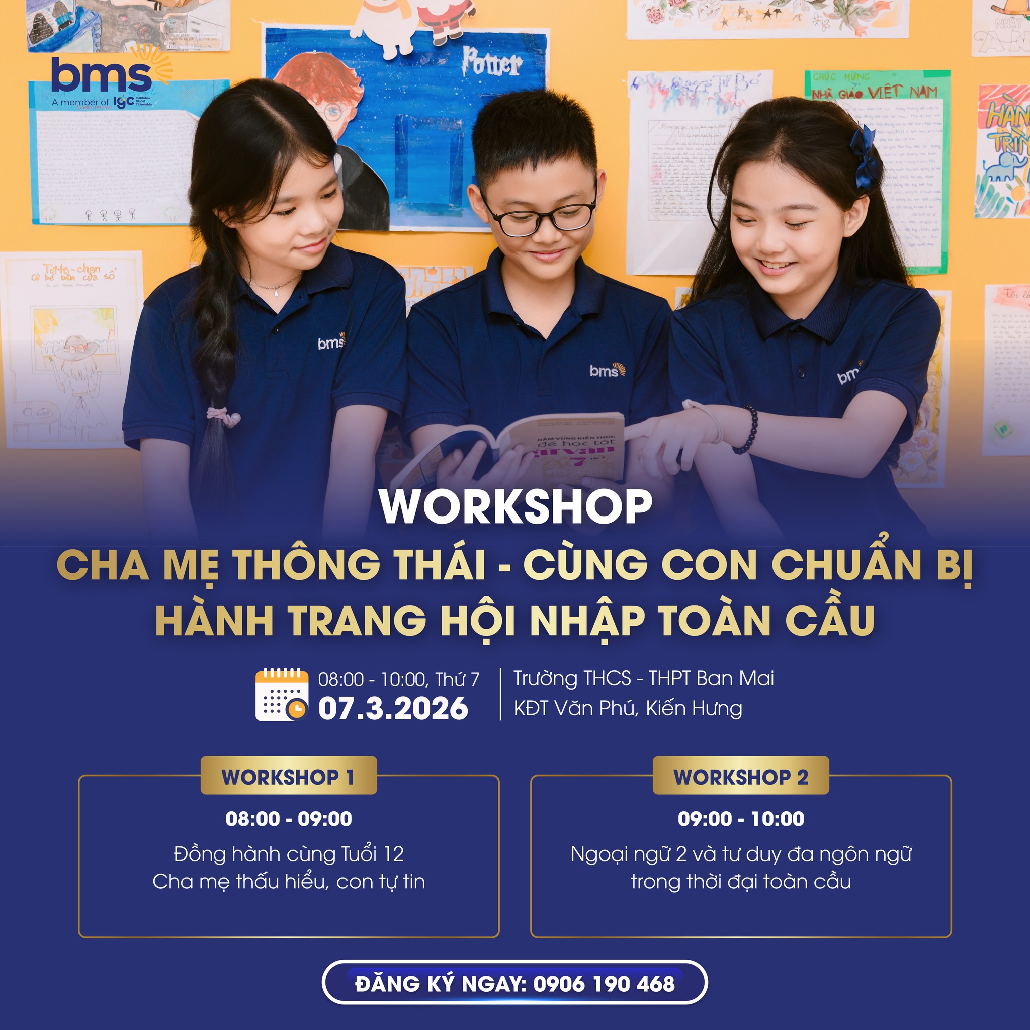 Chương trình nằm trong khuôn khổ sự kiện Kỳ thi Học bổng Tài năng BMS diễn ra ngày 07/3/2026, mang đến không gian đồng hành thiết thực dành cho phụ huynh trong thời gian các con tham gia kỳ thi.